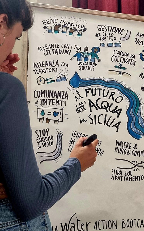 Dal 2021 a oggi facilito e accompagno diversi gruppi. Nei processi e nelle formazioni che conduco unisco le mie competenze da illustratrice a quelle da facilitatrice. La facilitazione visuale è per me uno strumento potentissimo per comunicare e per rendere visibile ciò che sta avvenendo durante un incontro di gruppo.