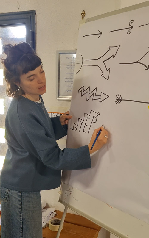Unendo le mie competenze di facilitatrice di dinamiche di gruppo ho creato una serie di laboratori per sviluppare i processi creativi collettivi. Generalmente ogni laboratorio è costituito da una parte di lavoro individuale e poi di condivisione di idee e risultati. Al termine di ogni incontro celebriamo il lavoro fatto insieme con una mini mostra estemporanea degli elaborati prodotti.